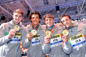 Strepitosa ultima giornata ai Campionati del Mondo di Budapest, l’ITA Swim battendo gli USA è d’oro nella 4×100 Mista stabilendo con 3:27.51 il nuovo record europeo. Ceccon, Martinenghi, Miressi ed il nostro Burdisso non deludono le aspettative e con quattro prestazioni di altissimo livello salgono sul gradino più alto del podio. Federico nuota la frazione a delfino in 50.63, tempo mai nuotato prima. Lo stesso sfiora per pochi decimi l’ingresso in finale nei 100 delfino individuali.